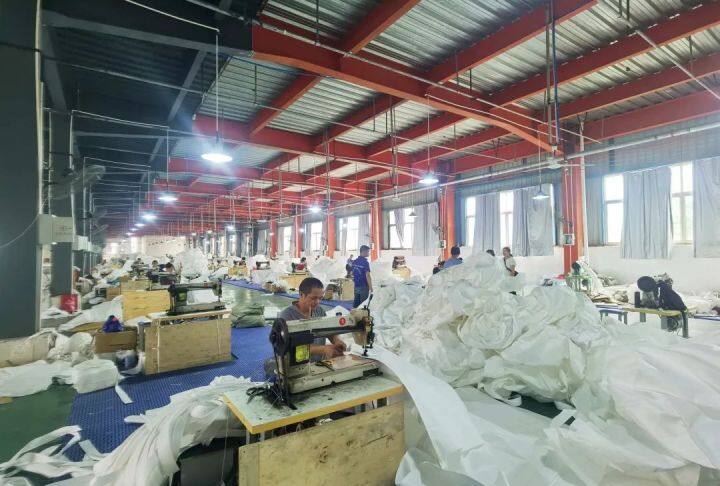 工人们正在生产吨袋。
